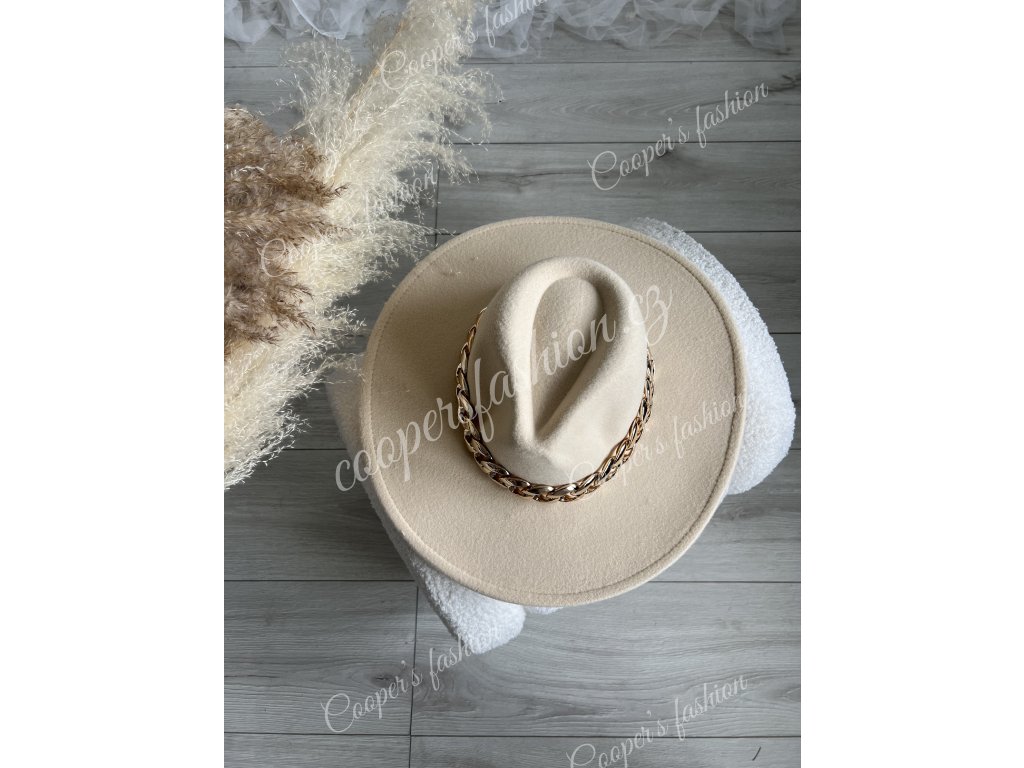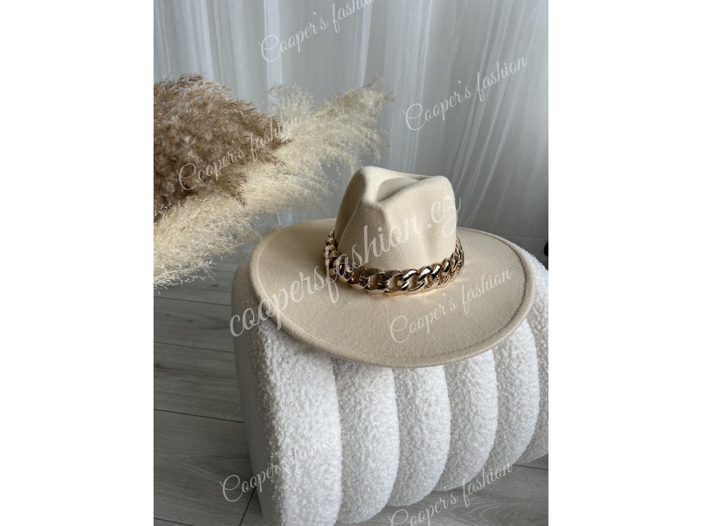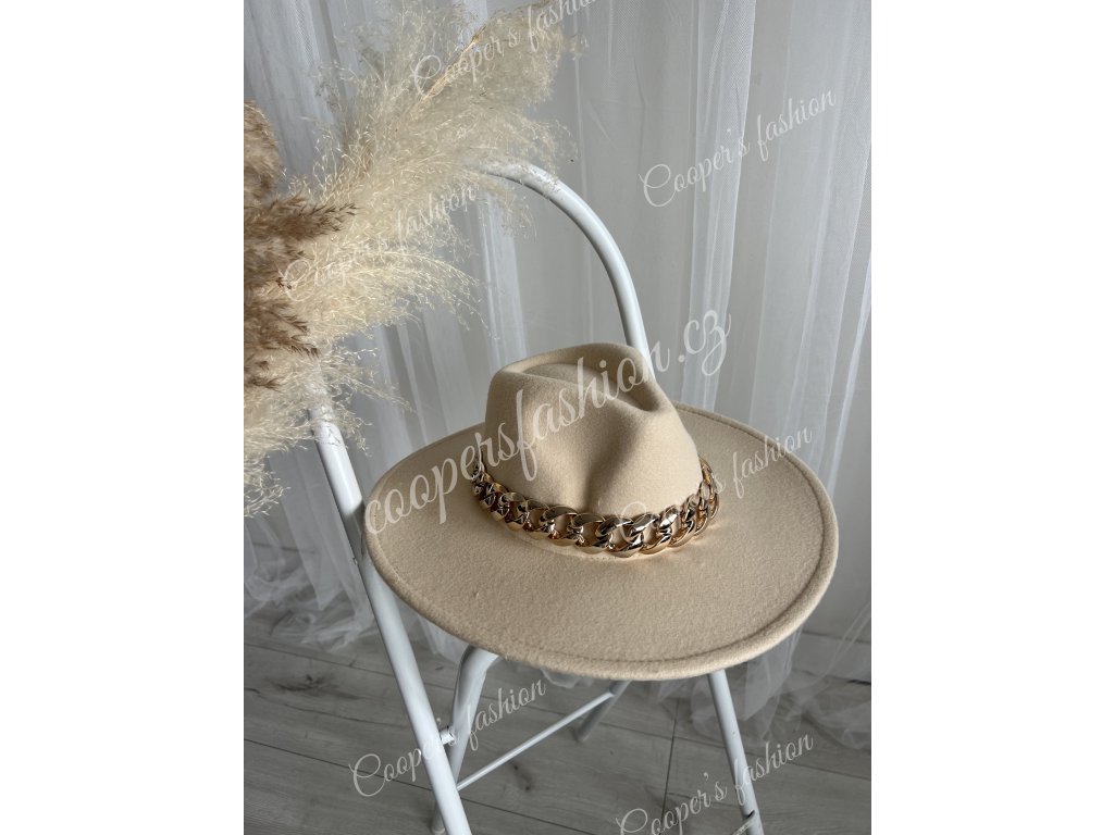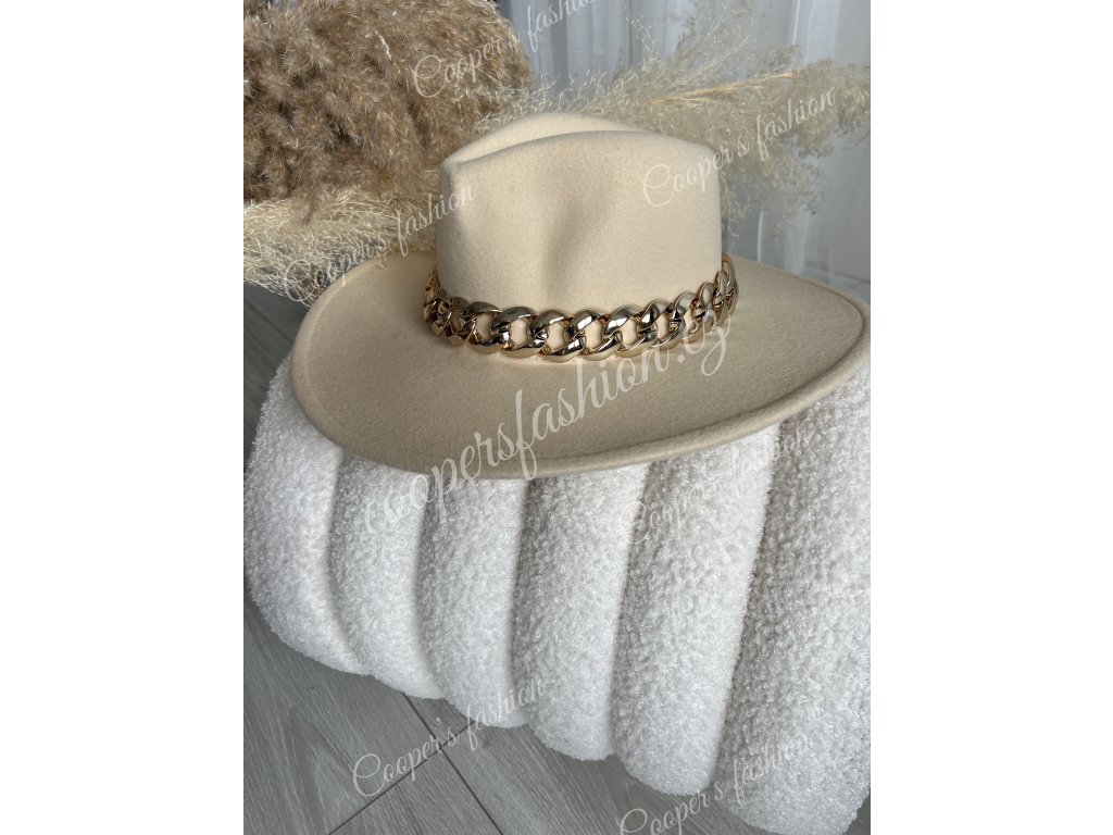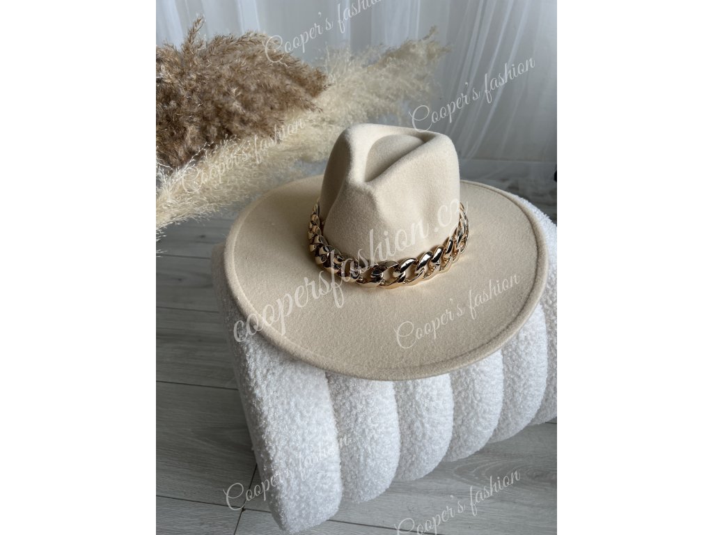 Klobouk béžový - s řetízkem - Oliver